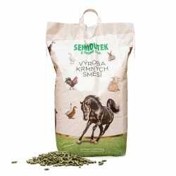 Použité suroviny: Úsušky píce vojtěšky, ječmen setý , oves setý, pšeničné otruby, slunečnicový extrahovaný šrot, hydrogenfosforečnan vápenatý, uhličitan vápenatý, fosforečnan hořečnato-vápenatý, chlorid sodný, Vit A, D 3, E ,síran měďnatý pentahydrát Cu SO4 x 5 H2 O.