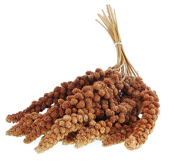 Senegalské proso červené v klasech k ozobu pro drobné exotické ptactvo, andulky a malé papoušky.