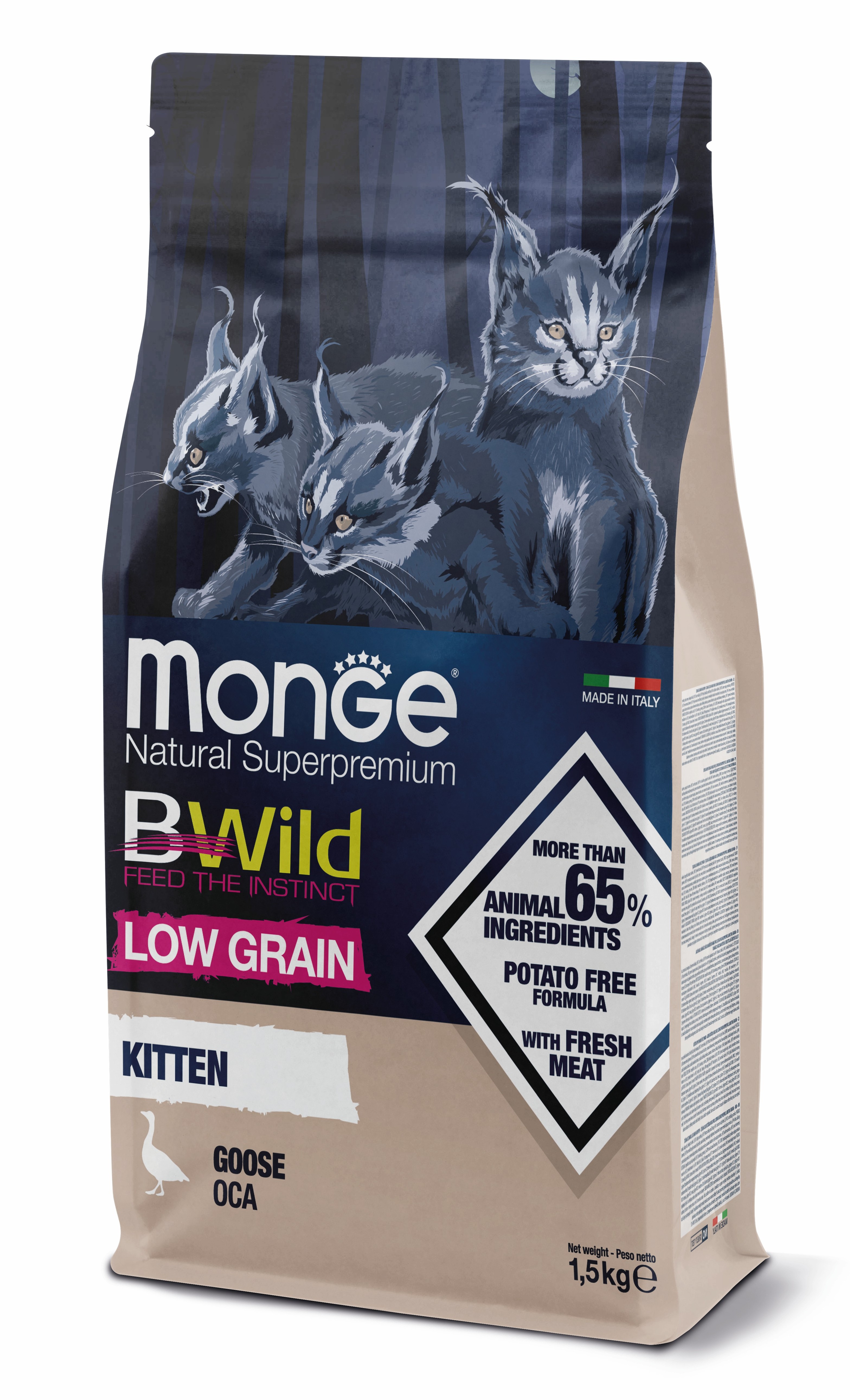 MONGE NATURAL SUPERPREMIUM BWILD KITTEN CAT husa 34/17 - 1,5kg