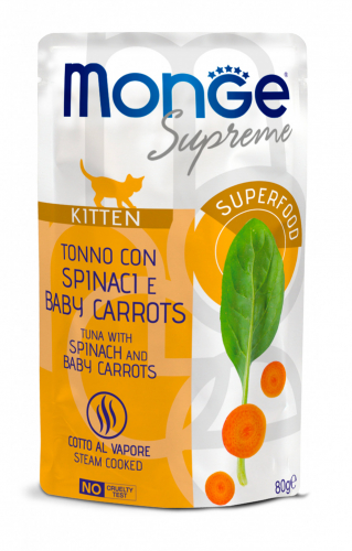Monge Supreme Kitten Tuňák, špenát, baby karotka 80g