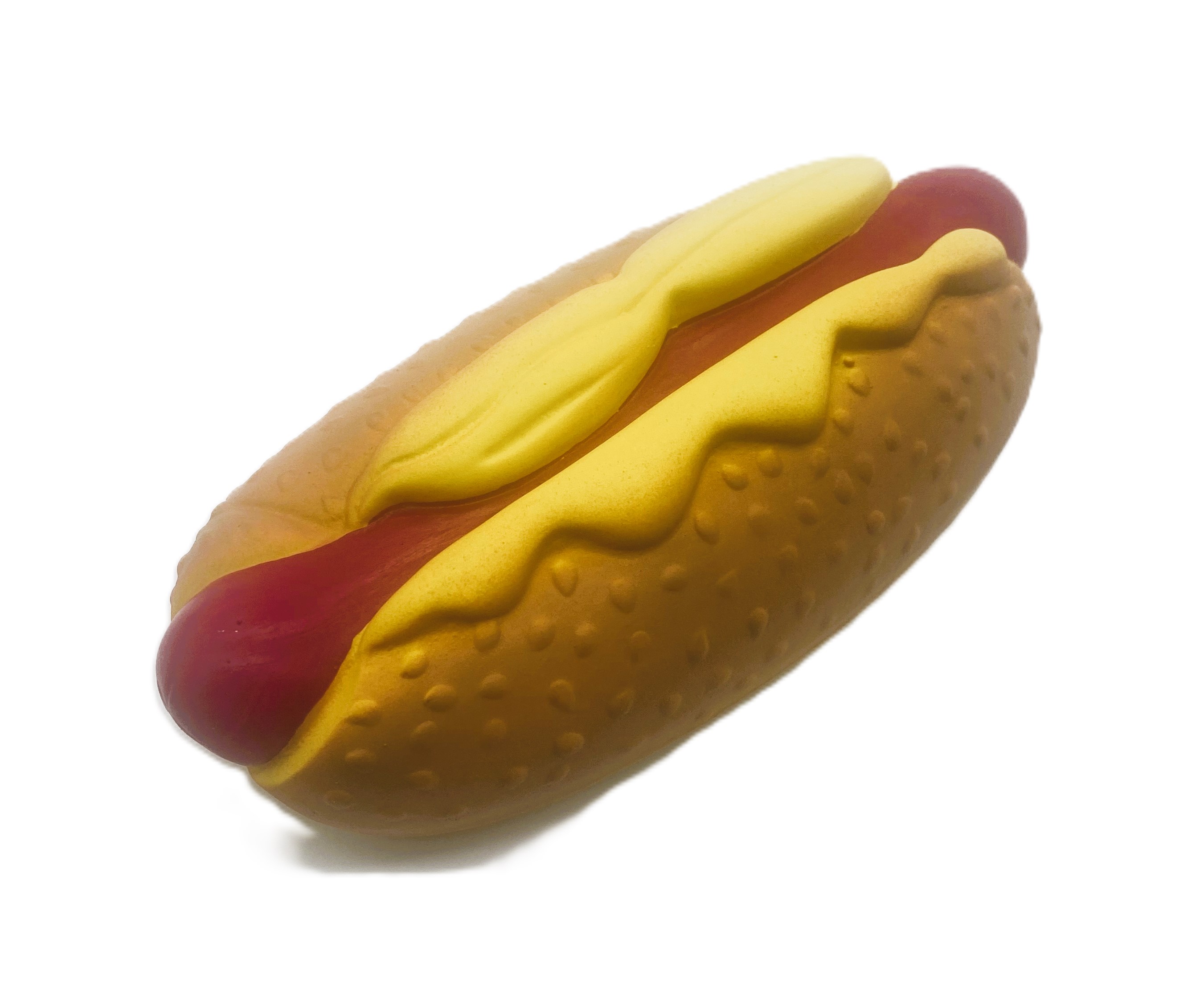 Latexová hračka pro psy ve tvaru hot dogu.