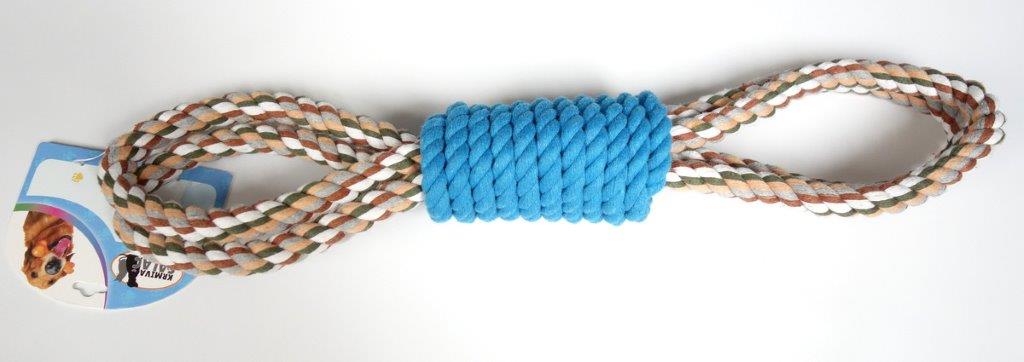 Bavlněné přetahovadlo pro velké psy - dvojité, oboustranné rukojeti s válcem uprostřed