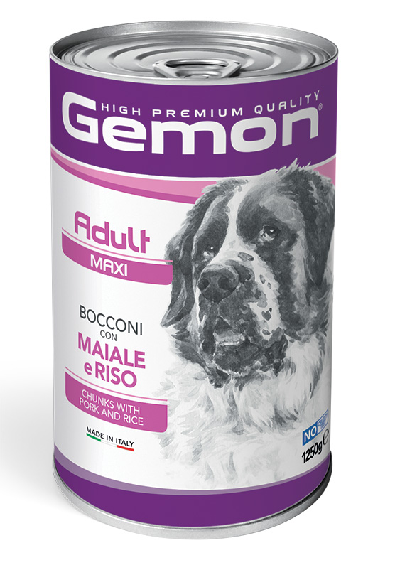 GEMON Dog Maxi konzerva s masovými kousky - kompletní krmivo pro psy.