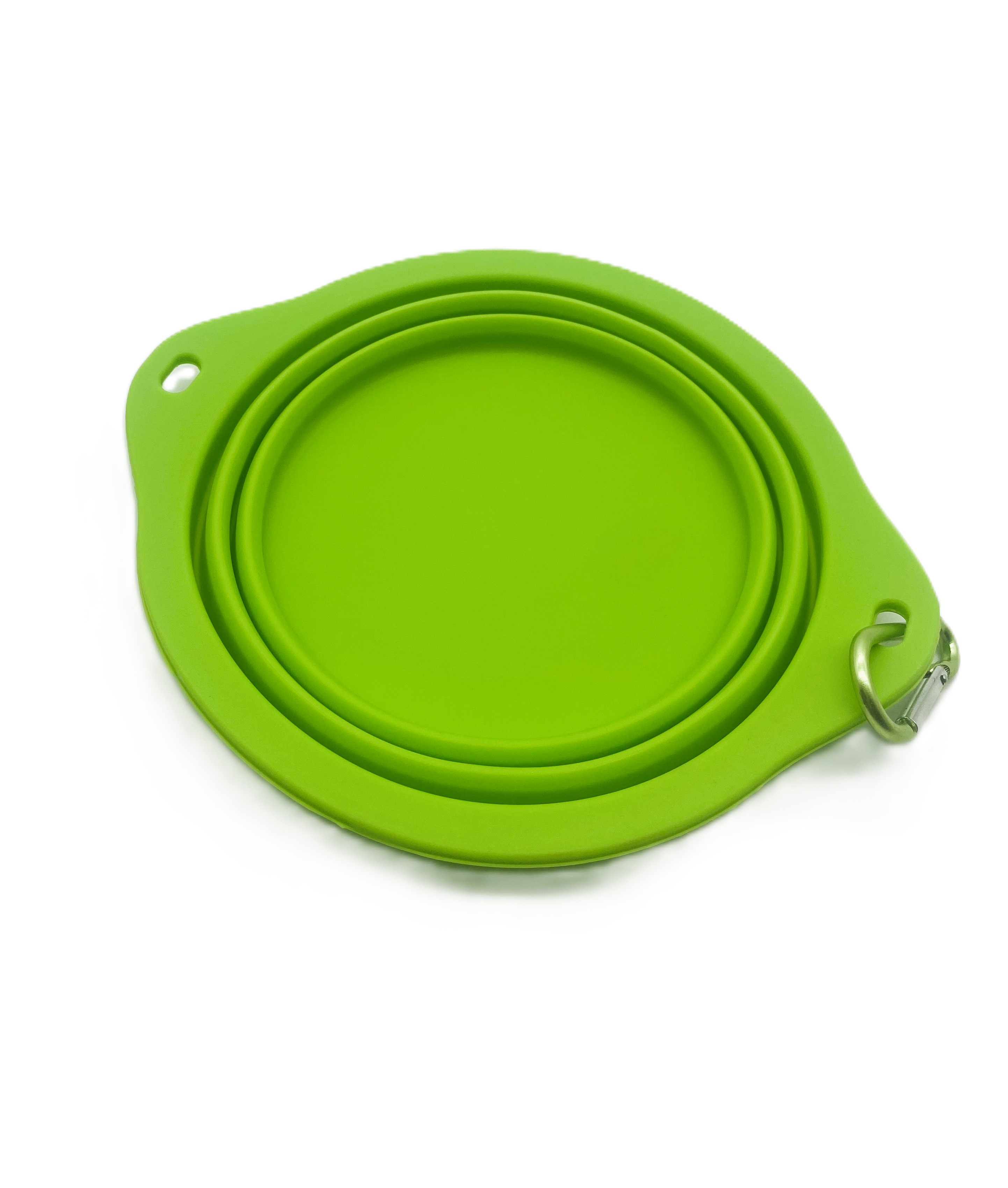 Skládací miska pro psy vyrobená z odolného materiálu. Ideální na cestování nebo procházky. Složená zabere jen velmi málo místa.