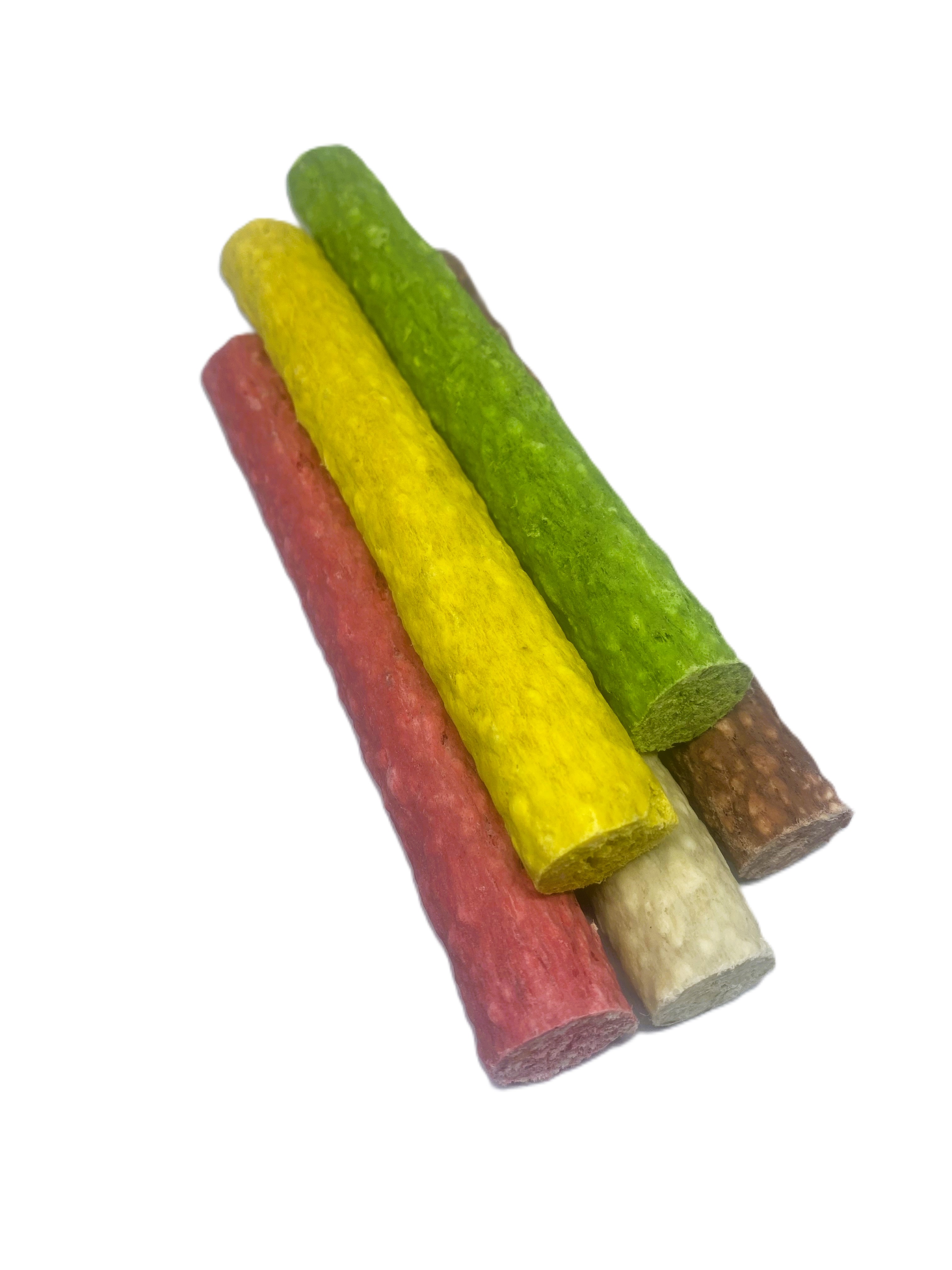 Žvýkací pochoutka pro psy ze drcené bůvolí kůže.