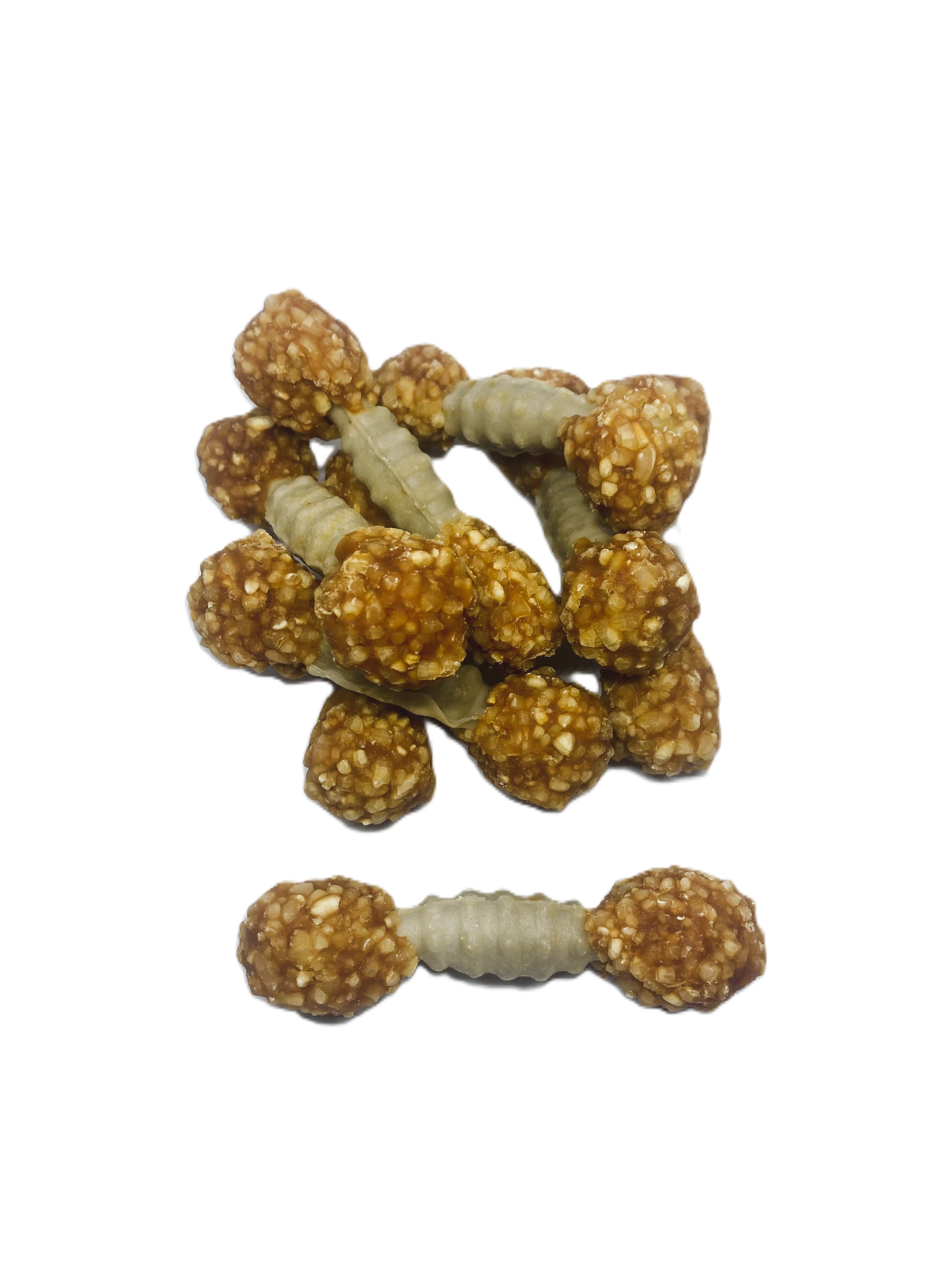 Dentální tyčinka na každém konci obalená kuřecím masem s rýží je super pamlsek na žvýkání a čištění zubů pejsků všech velikostí. Navíc je velmi chutný.