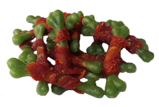 kachní maso 55%, dentální kost 40%, kukuřičný škrob 3%, konzervanty