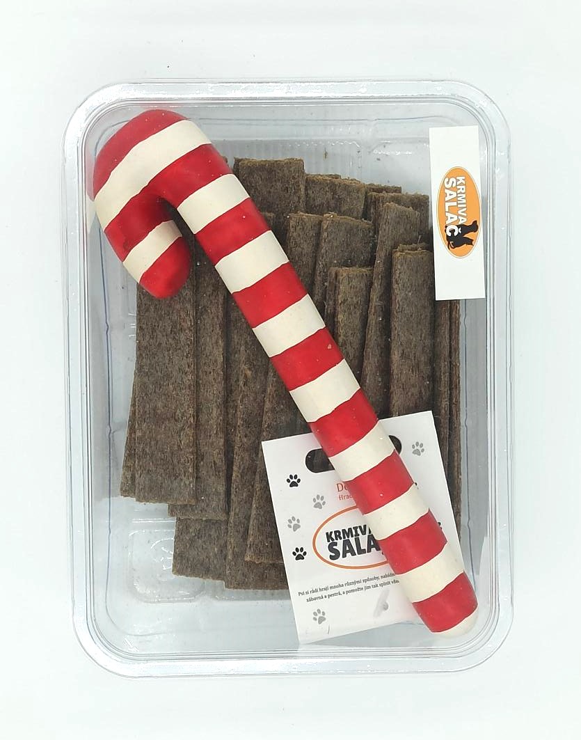 VÁNOČNÍ KRABIČKA - POLOMĚKKÉ PAMLSKY - hovězí plátky 300g + hračka