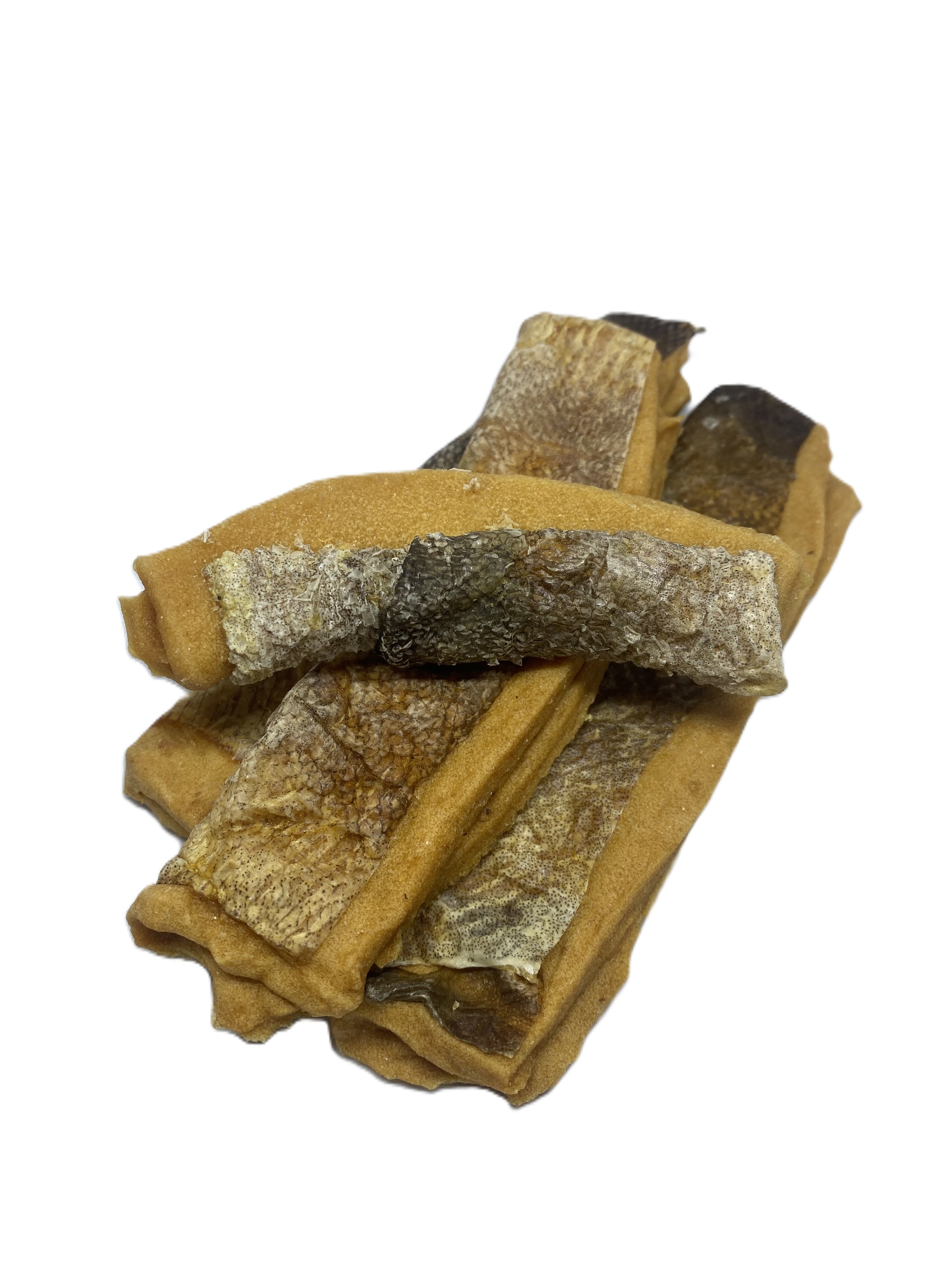 Velký žvýkací pamlsek z tresčí kůže plněný rybím masem je chutná odměna pro Vašeho mazlíčka.