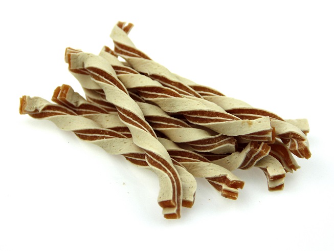 Měkoučkatý sendvič z tresky a kuřecího masa je skvělou odměnou pro každého pejska. Je dlouhý cca 10-11cm a snadno se láme na menší kousky.