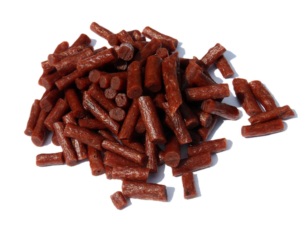 Lososové tyčinky sekané na 1cm jsou parádní odměnou či mlskou pro malé pejsky, nebo kočičky.