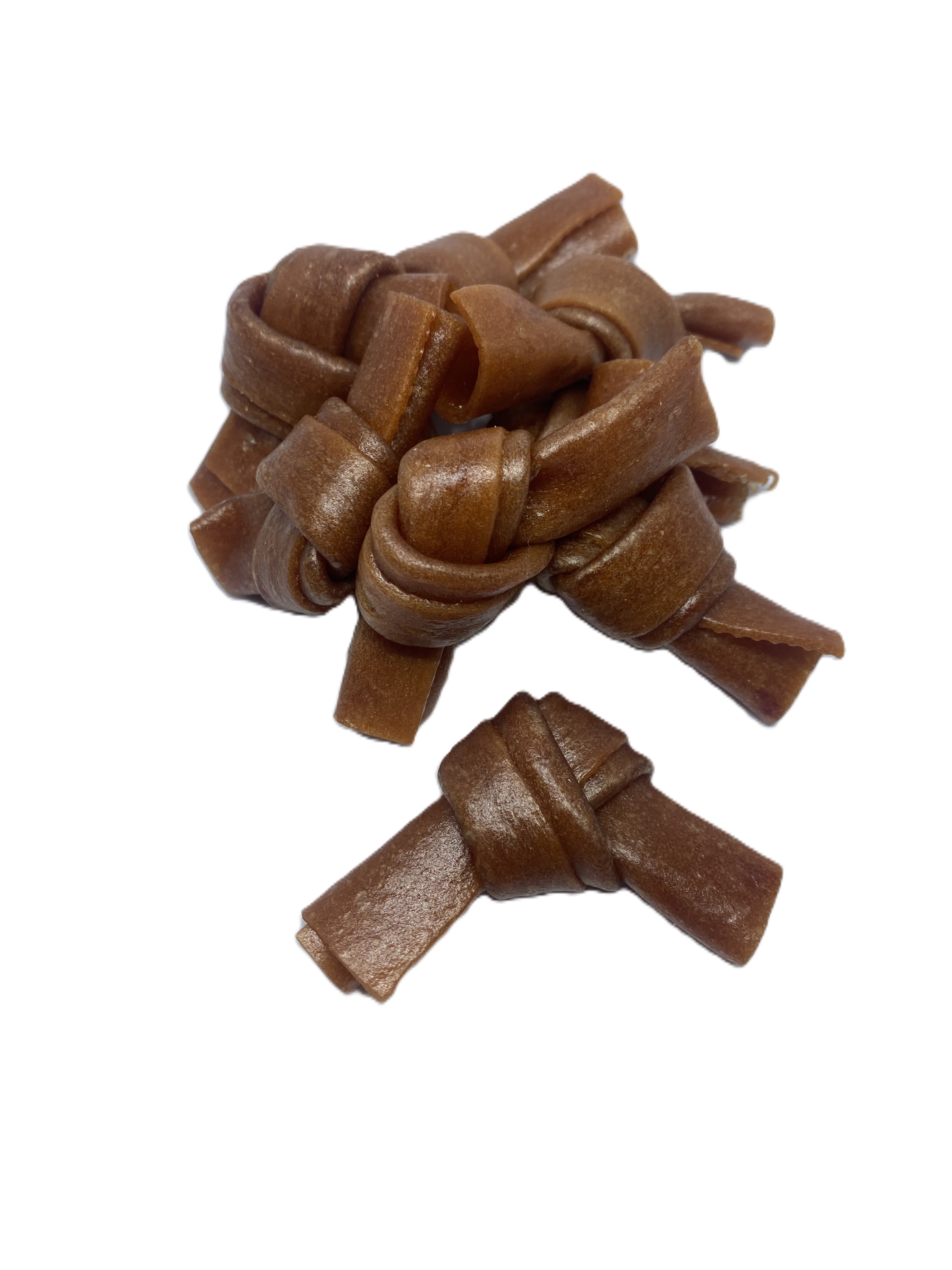 V našem sortimentu najdete také uzlíky v gramáži 250g (kód 2956) a i v kuřecím provedení 100g (kód 2953) a 250g (kód 2954).